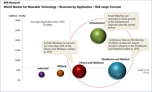 По данным исследования Canalys, сегмент носимых устройств в сфере здравоохранения находится в зачаточном состоянии, но ему прогнозируют стремительный рост – до 17 млн разнообразных трекеров и браслетов, используемых для отслеживания состоянии здоровья пациентов. Предполагают, что объем ежегодных доставок вырастет даже до 23 млн к 2015 г. и до более 45 млн к 2017 г.