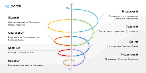 Компании необходимо дозреть до осознания необходимости построения культуры D&I. Как понять, готова ли ваша компания к преобразованиям? Обратимся к модели спиральной динамики развития организации Клера Грейвза.
