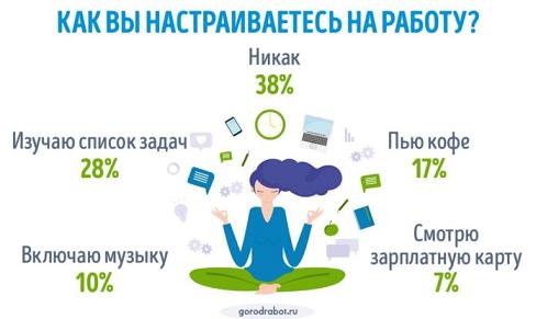 GorodRabot.ru спросил у своих пользователей ‒ как вы настраиваетесь на работу?