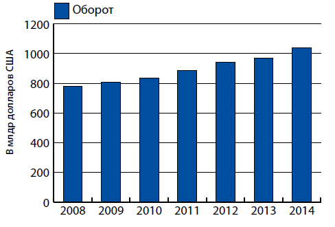 Рис. 1. Динамика развития мирового фармацевтического рынка в 2008–2014 гг., млрд долларов США