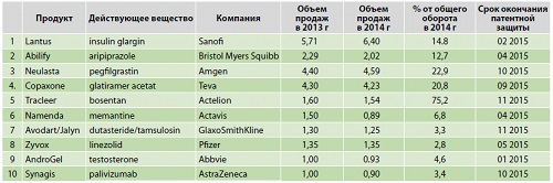 Следует отметить, что препаратам биотехнологического происхождения по истечении срока патентной защиты немедленная генериковая конкуренция в виде биосимиляров не грозит. Это связано с особенностями лекарственных средств данной группы — отсутствием возможности прямой замены биосимилярами, более настороженным отношением врачей при выписывании данных средств и недостаточной правовой базой в отношении урегулирования обращения препаратов этой группы. Поэтому реальные потери от патентного обвала в 2015 году эксперты прогнозируют всего на уровне $16 млрд.