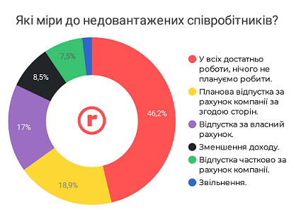 У планових — за рахунок роботодавця, а також без збереження зарплати та частково за рахунок компанії. Також серед заходів — зменшення доходу та звільнення (до них вдалися майже 10% роботодавців).
