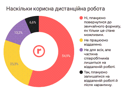 Майже 55% респондентів запевнили, що повернуться до звичного режиму праці, щойно це стане можливим. 13,2% роботодавців залишить опцію віддаленої роботи для певних категорій персоналу.