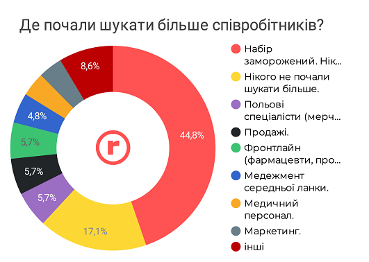 Водночас у частині компаній дещо поменшало роботи для «польового» персоналу, маркетологів, логістів, складських працівників, менеджерів середньої ланки, продажників тощо.