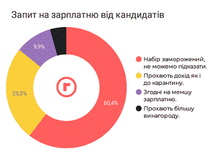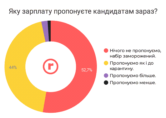 Таких 44%. І тільки окремі компанії були змушені запропонувати кандидатам на вакансії або менші суми, ніж раніше, або дещо збільшили їх.