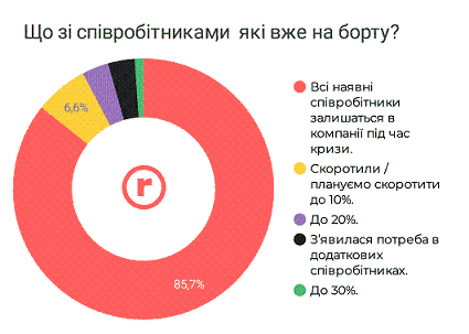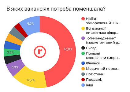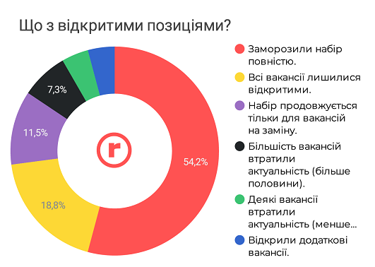 Приблизно кожна п'ята компанія лишила всі вакансії відкритими, кожна десята — продовжує набір «на заміну». Частина компаній відзначила, що вакансії (більшість або деякі) втратили актуальність.