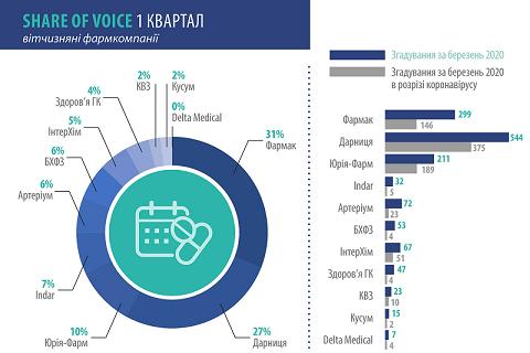 Березневий бум, пов’язаний з СOVID-19, ще більше позначився на піарі закордонних фармкомпаній – понад 70% контактів були з матеріалами щодо цього інфоприводу.