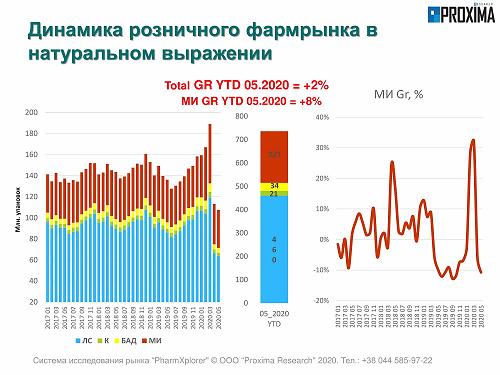 За 5 месяцев 2020 года розничный фармацевтический рынок в денежном выражении продемонстрировал прирост 11%, а медицинских изделий – 27%. В упаковках медицинские изделия по сравнению с лекарственными средствами показывают больший рост – 8% против 2% соответственно.