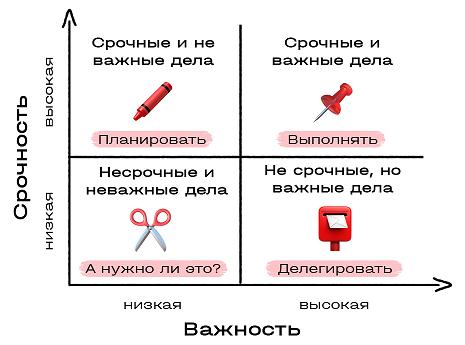 Например, в работе над проектами удобно использовать матрицу Эйзенхауэра.