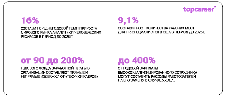 Аналитика в HR сегодня востребована в том смысле, что спрос на квалификацию превышает предложение: всем нужны специалисты определенного уровня — условные мидлы или синьоры. Есть очень мало людей, которые могут передать реальный опыт. В то же время не сказал бы, что подавляющее число компаний захотело такого человека: скорее, организации пытаются добавить функционал уже имеющимся людям, — с переменным успехом.