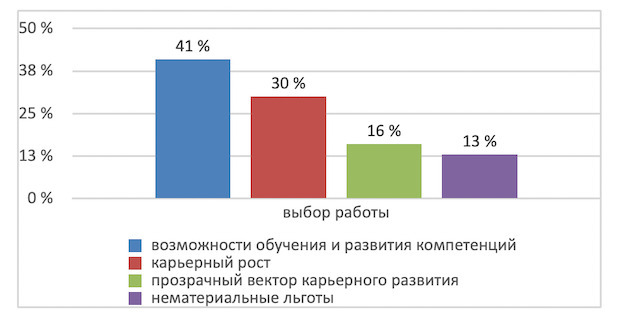 Давайте посмотрим, чем сейчас руководствуются миллениалы при выборе работы (по итогам опроса сотрудников нескольких крупных международных компаний):