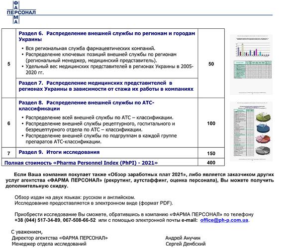 Специализированное агентство «ФАРМА ПЕРСОНАЛ» сообщает Вам о завершении ежегодного исследования «Pharma Personell Index (PhPI) – 2021». Данный обзор включает исследование штатной структуры фармацевтических компаний в Украине. В нем подробно изучены: распределение персонала фармкомпаний по отделам, позициям, регионам, продуктовым линиям (АТС-классификации) и сегментам (Rx, Hospital, OTC).