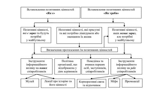 ценности-цели – они отражают стратегические цели существования организации, и ценности-средства, позволяющие достичь ценности-цели.