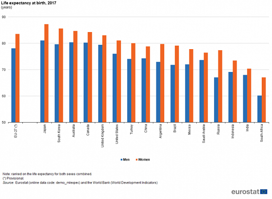 Ця стаття є частиною серії статистичних статей, заснованих на публікації Євростату «ЄС у світі 2020». Вона присвячена таким питанням громадського здоров’я, як витрати на охорону здоров’я, її забезпечення та ресурси, а також різноманітні детермінанти здоров’я в Європейському Союзі (ЄС) та 16 членів Групи двадцяти (G20), які не входять до ЄС. Стаття дає уявлення про стан здоров’я в ЄС у порівнянні з (більшістю) великих економік решти світу, таких як його аналоги в так званій тріаді — Японія та Сполучені Штати — та БРІКС, що складається з Бразилії. , Росії, Індії, Китаю та Південної Африки.