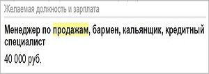 На картинке ниже — пример всеядного кандидата, который готов на все. Вряд ли из него получится хороший сейлз.