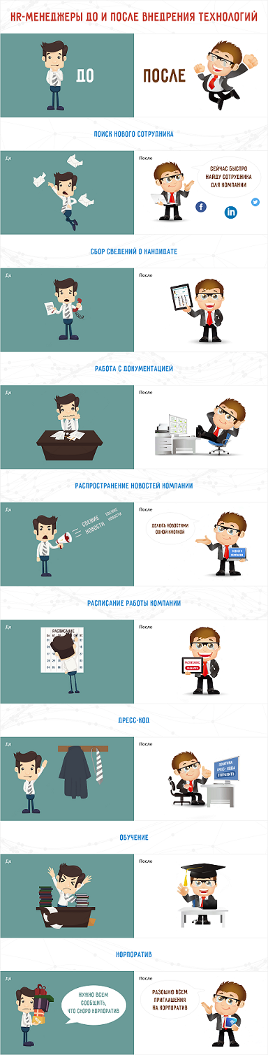 HR-менеджеры до и после внедрения технологий