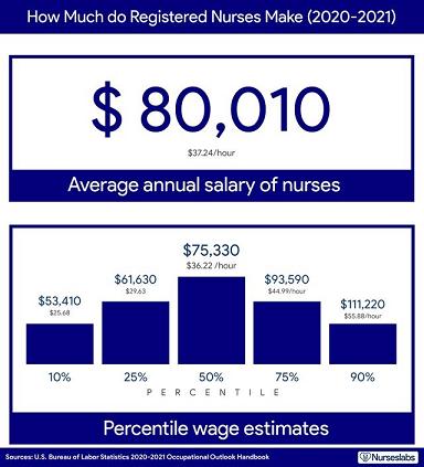 Среднегодовая заработная плата медсестер в США