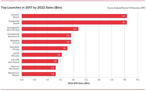 EvaluatePharma опубликовала прогнозный рейтинг наиболее ожидаемых новых препаратов, лонч которых состоится в 2017 году. Эти препараты принесут фармкомпаниям-производителям наибольшую выручку от реализации в течение ближайших 5 лет.
